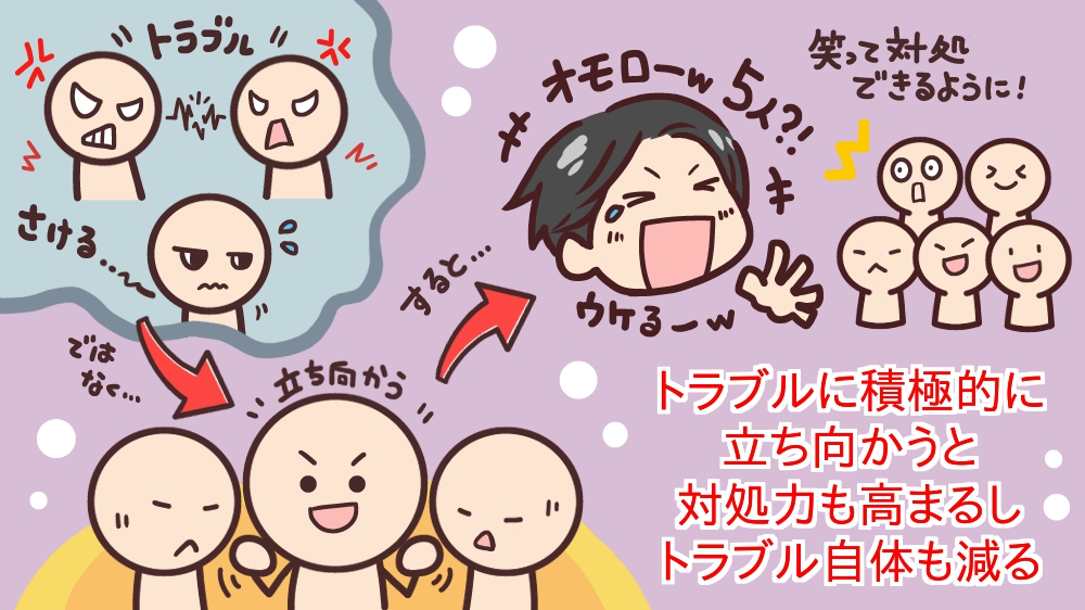 トラブルに積極的に立ち向かうと、対処力も高まるし、トラブル自体も減る